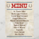 Le menu parfait pour une soirée Hoedown avec un cowboy à cheval sur un bronco cinglant et un texte sur le thème Country.