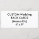 CARTE DE MENU PERSONNALISÉE IMPRIMÉE PERSONNALISÉE Modèle vierge. CRÉEZ VOS PROPRES CARTES DE MENU MARIAGE. FAITES VOS PROPRES CARTES DE PROGRAMMES. CONCEVEZ VOS PROPRES CARTES DE RACK. TÉLÉCHARGEZ VOTRE PROPRE DESIGN, PHOTO, MOTIF, LOGO. AJOUTER DU TEXTE DE POLICE MULTI. PERSONNALISER ENTIÈREMENT. Cartes en rack menu et programme personnalisées, imprimées sur le stock de carte de poids blanc vif (100 lb) avec une finition brillante, haute qualité, couleur, impression à fond. 4 po x 9 po (portrait) ou 9 po x 4 po (paysage). Commande minimum de 25 cartes. Jusqu'à 50 % de réduction pour les commandes en vrac.