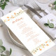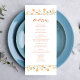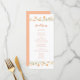 Élever votre décor de réception avec cette carte de menu mariage élégante avec un design floral pêche doux et calligraphie délicate. Idéal pour un printemps, un été ou un mariage de automne, ce menu simple et minimaliste décrit parfaitement votre plat à déguster lors du dîner mariage. Une touche raffinée qui ajoute à la fois style et fonctionnalité à votre cadre de table, idéale pour les couples à la recherche de détails romantiques et intemporels.