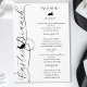 Menu élégant noir et blanc pour le brunch de Pâques conçu par Destei. « Brunch de Pâques » apparaît tourné sur le côté avec une silhouette de lapin entre les mots et des fioritures tourbillonnantes autour. En haut, il est écrit « Menu » avec un petit lapin au repos en dessous. Des sections pour les entrées, le plat principal, les desserts et les boissons vous donnent de l'espace pour lister vos plats de manière organisée et stylée. Le texte noir et les détails décoratifs se détachent magnifiquement sur le fond blanc, faisant de ce menu un ajout charmant à votre décoration de table de Pâques.