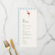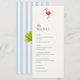 Add a playful tropical touch to your reception with this pink flamingo wedding menu. The front features a charming pink flamingo illustration that brings a fun island vibe to your table setting, while the back showcases classic blue stripes for a fresh coastal look. The mix of tropical and coastal elements makes it perfect for beach weddings, destination celebrations, and summer receptions.