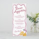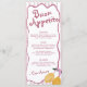 Add a playful touch of Italian charm to your baby shower with this whimsical Amalfi-inspired menu card. Featuring watercolor lemons, soft pink stripes, and a wavy border, this design brings the perfect mix of sweetness and sophistication to your table. Ideal for a baby girl shower with a citrus or coastal theme.