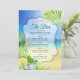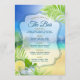 Affichez votre menu open bar de mariage de plage avec ce design lumineux et joyeux, avec une plage dorée avec mer turquoise et ciel bleu avec des lumières bokeh, décoré par un verre rafraîchissant de mojito froid glacé avec menthe et chaux sur des feuilles de palmiers verts frais. Parfait pour les mariages sur la plage, les mariages de destination, les mariages tropicaux, les mariages insulaires, les mariages d'été et d'autres lieux liés à la mer. Visitez la collection pour voir l'ensemble de la suite.