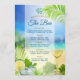 Affichez votre menu open bar de mariage de plage avec ce design lumineux et joyeux avec une plage dorée avec mer turquoise et ciel bleu avec des lumières bokeh, décoré par un verre de vin clair avec des raisins et le verre rafraîchissant de mojito froid glacé avec menthe et chaux sur des feuilles de palmiers verts frais. Parfait pour les mariages sur la plage, les mariages de destination, les mariages tropicaux, les mariages insulaires, les mariages d'été et autres événements liés à la mer. Visitez la collection pour voir l'ensemble de la suite.
