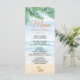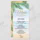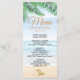 Cette carte de menu représente une scène romantique de palmiers verts, des vagues de l'océan et deux étoiles de mer sur une plage de sable. La carte revient à un beige chaleureux avec des feuilles de palmiers vert vif. La carte de menu parfaite pour votre mariage à la plage. Vous pouvez cliquer sur le lien personnaliser pour ajouter vos propres détails de menu. Il s'agit d'une suite mariage correspondante qui peut être entièrement personnalisée.