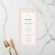 Cartes de menu Baptême élégantes qui présentent des rayures rose et blanc clair et une simple croix sur un arrière - plan en ivoire.