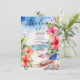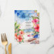 Élevez votre célébration au bord de la plage avec ce menu de mariage magnifiquement conçu, parfait pour une affaire de destination tropicale. Placé sur un fond de rêve de parasols de plage peints, ce menu de 11,4 cm x 15,9 cm invite vos invités à se régaler d'un festin aussi vibrant que le décor. Autour de la scène, de délicates fleurs d'hibiscus dans des nuances époustouflantes d'orange et de rose ajoutent une touche de charme tropical. Ce menu non seulement met en valeur votre délicieux menu du jour de mariage, mais complète également l'ambiance sereine de votre célébration au bord de la plage. Entièrement personnalisable pour correspondre à votre style unique et à vos choix de menu.