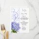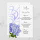 Cette carte de menu plat mariage est présentée dans le papier blanc mat de base avec une impression d'art d'une belle hydrangée unique design. Nous offrons une serviette et une plaque en papier pour correspondre. Customisez cet élément et modifiez les éléments de menu et les noms d'exemple sur le vôtre. Image stock
