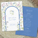 Menu plat mariage aquarelle fleurs sauvages bleu