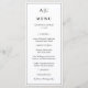 Menu simple, taille : 10,2 cm x 23,5 cm, papier : Signature mat