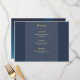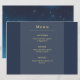 Menu plat personnalisé or bleu. Avant or et bleu avec des étoiles majestueuses au dos. Personnalisez le texte sur l'avant et l'arrière du menu. Fournitures de fête idéales pour votre événement d'entreprise, gala, soirée de Noël, et plus encore. Fait partie de la collection de design Étoile de Noël. Utilisez le modèle pour créer votre propre menu bleu et or.