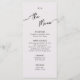 Menu plat pour Mariage Boho. Les pastels élégants, le design minimaliste et les touches personnelles créent une atmosphère sophistiquée et formelle.
