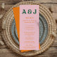 Menu de mariage contemporain lumineux et audacieux. Ce modèle de menu funky est à personnaliser pour l'événement parfait. Menu moderne avec une police rétro vintage.