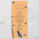 Habille ta fête d'Halloween avec le mystérieux attrait de cette "Plum Black Crow Spider Autumn Leaves Halloween Menu". Le design présente un mélange d'éléments étranges, avec des corbeaux noirs, des araignées éffrayantes et des feuilles d'automne dans des tons prunes riches. Cette carte de menu donne l'ambiance d'un festin mémorable, présentant vos délices d'Halloween et vos cocktails. C'est le choix idéal pour enchanter vos invités et élever l'atmosphère éffrayante pour une nuit de plaisir méchant. Le menu contient les mots "Cri, grignoter, et devenir éffrayant !". Les couleurs de ce menu sont orange et prune violet.