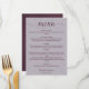 Menu Plum simple élégant sur Dusty Lavender Mariage