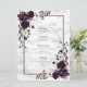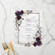 Créez le cadre parfait de la réception avec ce design de menu branché avec des éléments botaniques floraux prune violette et eucalyptus, des éléments de coin de poussière faux or, cadre violet prune et arrière - plan en marbre faux carrera. Parfait pour les mariages d'automne et d'hiver. Copyright Invitations élégants, tous droits réservés.