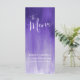 Belle carte de menu de dîner de mariage peinte avec un dégradé violet ou paquet de cartes de menu pour événement spécial. Modifiez ce menu à 4 plats avec vos propres mots. Menu d'art moderne avec lavis violet ultraviolet simple mais élégant. Idéal pour les mariages violets ou les événements sur le thème ultraviolet. Également disponible sur papier cartonné plus épais et fait partie de la collection de mariage d'art abstrait violet. © Conception et peinture originale de Sarah Trett. www.sarahtrett.com pour www.mylittleedenweddings.com sur zazzle.