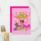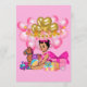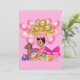 Illustration d'une adorable petite fille habillée en rose, avec des cheveux en petits pains aux arcs roses et tiara princesse. Entouré de jouets et avec des ballons roses et or au-dessus avec des étoiles et des bannières de lune. Cadeau mignon pour les parents, baby shower, révélation de genre ou cadeau d'anniversaire de naissance.