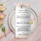 Personnalisez et ajoutez vos noms, la date du mariage, le menu et le programme du soir. Un arrière - plan faux argenté, avec des confettis roses en or. Texte noir.