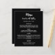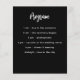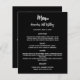 Un arrière - plan noir classique. Texte blanc. Avant : Personnalisez et ajoutez votre nom, votre date et le menu. Retour : Programme. Si vous avez un grand programme, vous pouvez réduire l'espacement des lignes. 1 feuille = 1 menu imprimé bord à bord.