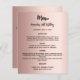 arrière - plan rose de gradient or. Texte noir. Avant : Personnalisez et ajoutez votre nom, votre date et le menu. Retour : Programme. Si vous avez un grand programme, vous pouvez réduire l'espacement des lignes. 1 feuille = 1 menu imprimé bord à bord.