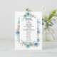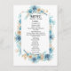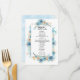Ce menu inspiré de la chinoiserie, "Un bleu avant moi", présente une jolie brune bleue et des fleurs exotiques. Personnalisez l'invitation à l'aide de vos informations, et si vous voulez modifier le style de texte et la police, sélectionnez le bouton "Cliquez pour customiser plus loin". Mariage