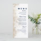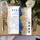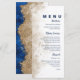 Carte de menu de mariage bleu roi et or | Carte de menu de réception élégante bleue et or.