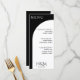 Carte de menu de réception mariage noir et blanc avec arche géométrique bloc de couleur. Une typographie élégante pour un regard cher à un prix abordable. Customisez la liste des repas et les détails personnels. Idéal pour un thème mariage moderne minimaliste avec une touche de style.