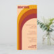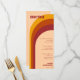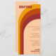 Coloris rétro vintage classique les années 70 aux lignes rayées ondulées arc-en-ciel menu de réception mariage. Design cool avec des couleurs hippie crème, orange et rouge. Personnalisez-le en ajoutant le nom de la mariée et du mariée, la date de l'anniversaire du mariage et une liste de menus.