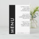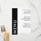Bande latérale noire et blanche, bloc de couleur 5x7 carte de menu de réception de mariage. Personnalisez-le avec les détails de votre événement.