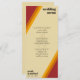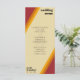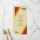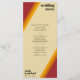 Menu de réception de mariage rouge, orange et marron clair avec coin rayé. Personnalisez-le en ajoutant votre propre liste de repas, le nom de la mariée et du marié et la date anniversaire du mariage.