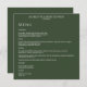 Menu Réception De Mariage Vert Moss Sombre Moderne