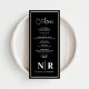 Présentez notre Mariage noir et blanc Monogram Réception ou dîner Fiançailles Menus, l'incarnation de l'élégance intemporelle et de la sophistication personnalisée pour votre célébration spéciale. Conçus avec une attention minutieuse aux détails, ces menus rehaussent votre réception ou votre dîner fiançailles par leur design épuré noir et blanc, créant une ambiance raffinée qui complète n'importe quel style de décoration. Personnalisez chaque menu avec votre propre monogramme mariage, en ajoutant une touche sur mesure qui reflète votre histoire d'amour unique et donne le ton pour une expérience culinaire inoubliable. Que vous soyez l'hôte d'un dîner de répétition intime, d'une fête de fiançailles ou d'une réception de mariage somptueuse, nos menus mariages élégants et simples apportent une touche de finition parfaite à vos tables. Associez-les à nos cartes de lieu de coordination pour compléter le look et créer une esthétique cohésive qui feuille une impression durable sur vos invités. Célébrez l'amour, le rire et les moments chéris avec notre Mariage noir et blanc Monogram Réception ou dîner Fiançailles Menus - un bel ajout à votre jour de mariage qui est aussi intemporel que votre amour.