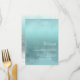 Ce menu moderne de réception de mariage est légèrement informel, chaleureux et personnalisé, et présente un design abstrait et aquarelle ressemblant à des reflets sur l'eau. Cet exemple présente une palette de couleurs de dégradé allant de turquoise doux au vert profond de l'océan. Personnalisez avec les initiales de la mariée et du marié, la date du mariage et les détails en utilisant le modèle fourni. Recherchez ID774 pour voir l'ensemble complet de correspondances et les options de couleurs supplémentaires.