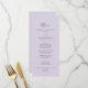 Cette carte de menu à la lavande rustique coordonnée violet mariage est parfaite pour un mariage simple. Le design élégant et rustique présente un violet de lavande poussiéreux clair et une atmosphère bohème moderne. Coordonnée avec la collection Rustic Lavender de Fresh & Yummy Paperie. Ce menu peut être utilisé pour une réception de mariage, un dîner de répétition ou tout événement.