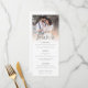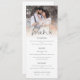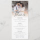Menu Mariage Élégant De Script Revêtu De Photo Moderne. Une typographie informelle en noir pour le titre principal Menu complétant le reste du texte que vous pouvez facilement personnaliser. Remplacez l'exemple de photo par votre préféré.