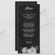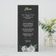 Carte de menu mariage unique avec fleurs blanches romantiques et feuilles verts sur arrière - plan noir. POUR PLUS DE PRODUITS CORRESPONDANTS cliquez sur la collection ci-dessus ou contactez-moi.