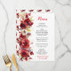 Menu mariage rustique avec des fleurs roses à l'aquarelle fleurie et verdure. Parfait pour un mariage de printemps ou d'été. Les mots peuvent être changés en fonction de vos propres détails ou exigences