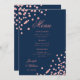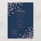 Menu Romantique Script Mariage Confetti Rose Gold Navy