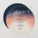 Complétez votre paysage de table avec notre menu rond Mariage de la lune au coucher du soleil — un mélange étonnant de romantisme et de chaleur inspiré par les cieux changeants. Conçu pour s'adapter parfaitement à l'ensemble des mariages, ce menu propose des gradients doux, une typographie élégante et des détails d'inspiration céleste qui reflètent votre journée de rêve, de l'heure d'or au crépuscule. Associez-le à des invitations assorties, à des panneaux et plus encore pour un look cohésif qui porte la magie de la lune au coucher du soleil.