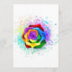 Grand rose fleuri avec pétales arc-en-ciel sur arrière - plan blanc, peint sur des éclaboussures de peinture colorée et lumineuse. 3d