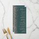Le bord gauche de cet élégant menu mariage moderne présente un design rose en faux parties scintillant doré. Le texte personnalisable combine écriture rose pâle, copperplate et polices italiques sur un arrière - plan vert foncé. L'envers est assorti d'une parties scintillant vert foncé et dorée.
