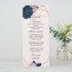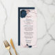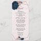 belle rose poussiéreuse et bleu marine fleurs et élégant menu feuille mariage géométrique. Dos de la carte : élégantes nénuphars rose rose sur un arrière - plan bleu marine Les détails de la parties scintillant sont simulés