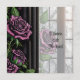 Ce menu propose de beaux roses violets sur une fenêtre de style gothique. Parfait pour votre mariage gothique ou anniversaire !