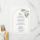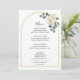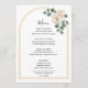 Ajoutez une touche finale élégante à vos tables de réception avec ce menu de mariage magnifiquement conçu, inspiré d'un thème de mariage de jardin de roses blanches à l'aquarelle. Le design présente des florales de roses blanches délicates associées à une verdure douce disposées le long d'une élégante arche de mariage florale dorée minimaliste, créant un accent botanique raffiné qui se sent romantique et intemporel. Cette composition florale douce reflète une esthétique de mariage romantique et intemporel botanique douce, apportant un sentiment de beauté naturelle et de sophistication à votre décoration de table.