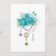 Clé d'or antique aux roses turquoise tendance décorée de feuilles d'or blanc et de perles rose et bleu. Couleur tendance. Rose turquoise. Blanc doré. Tiffany bleu.