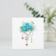 Clé d'or antique aux roses turquoise tendance décorée de feuilles d'or blanc et de perles rose et bleu. Couleur tendance. Rose turquoise. Blanc doré. Tiffany bleu.
