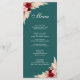 Nous sommes ravis de vous présenter notre Turquoise menu Pampas Grass et Roses de Bourgogne, avec un superbe design de rose bordeaux et rose avec une touche rustique d'herbe de pampas et de fleurs séchées. Notre carte menu est l'ajout parfait à votre décor mariage, ajoutant une touche de sophistication et de charme à votre réception. Le design floral délicat ajoute une touche romantique, tandis que les fontes élégantes augmentent l'esthétique globale. L'impression de haute qualité garantit que les couleurs et les détails sont vibrants et durables. Que vous planifiez un mariage de plein air rustique ou une fête intérieure élégante, notre carte menu est un choix polyvalent et élégant. Associez-le à nos invitations assorties, numéros de table, bannière d'accueil et cartes de lieux pour créer un look cohérent et mémorable pour votre journée spéciale. Trouvez les produits correspondants dans la collection Turquoise Burgundy Tropical Rose Garden Wedding Collection. Commandez le vôtre dès aujourd'hui et ajoutez une touche de beauté et d'élégance à votre réception de mariage !
