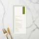 ROWAN modern minimalist, wedding guest place card and menu. Features, citrusy moss green typography on ivory cream backgrounds with chic sage green stripe pattern backing. Please note, guest names must be entered and each card added to your cart individually.