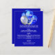 Un arrière - plan bleu royal. Texte blanc. Décoré de ballons bleus et argentés. Avant : Personnalisez et ajoutez votre nom, votre date et le menu. 1 feuille = 1 menu imprimé bord à bord.